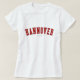 Verifique para fora este t-shirt de Hannover! É você de Hannover, Alemanha? Você tem um amigo ou um membro da família que amem Hannover, Alemanha? Em caso afirmativo, este t-shirt da "bandeira" é exatamente o presente que você está procurando! As características de design "Hannover" na rotulação vermelha arqueada na pia batismal clássica da faculdade.