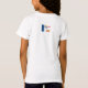 Na obra de arte original de ZoeSPEAK sobre este T-Shirt bilíngue, o amigo Prince de Zoe identifica-se em inglês e francês - "Sou eu - um cão feliz!", parado num campo verde-pastoso.