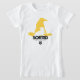 Confira este gráfico amarelo do Chapéu Selecionador com o texugo da Hufflepuff e as palavras "Selecionado para Hufflepuff" abaixo.