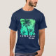 A camiseta masculina é mostrada em azul marinho com um impressão de palmeiras tropicais havaianas. Personalize este item ou comprar como está.