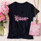 This women’s navy blue V-neck shirt features soft pink Easter typography created with real flower petal photography overlay by Meggidoo. The deep navy blue fabric evokes midnight blue, classic indigo, and rich ocean tones, providing a strong and timeless backdrop that symbolizes depth, faith, and reverence.