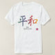 camisa escura com paz no roteiro do kanji, no subtítulo e no seasl da assinatura