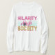 Esta t-shirt é um motim! O texto "Hilaridade na alta sociedade" é dividido pela frente em uma paleta de cores divertida e inigualável. Cada letra é uma cor ousada diferente, fazer uma declaração que é divertida e moda.