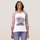 Camiseta feminina mangas raglan 3/4 da Bella+Canvas, Branco/Cor-de-rosa, Adulto P