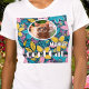Coloque seu gato na foto com esta camiseta temática felina floral. Clique em 'Personalizar' para carregar uma foto favorita do seu animal de estimação, que aparecerá no 'quadro' redondo próximo ao topo. O painel de fundo é brilhante e colorido, com flores grandes em um estilo penteado e hippie. A legenda 'Legal gato' e o nome do seu animal de estimação aparecem abaixo da foto. Uma maneira divertida de celebrar seu animal de estimação e um presente ideal para amantes de gatos.