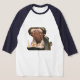 Camiseta Básica, Mangas Raglan 3/4, Branco/Preto, Adulto M