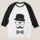 Camiseta Básica, Mangas Raglan 3/4, Branco/Preto, Adulto M