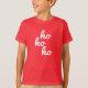 Ilustração de design de texto Ho-ho-ho com letras brancas sobre fundo vermelho para o Natal. É possível mudar a cor de fundo e adicionar uma diferente à design com sua escolha.