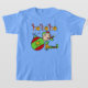 Um design de Natal bonito apresenta um elfo vestido com um boné de meia vermelha e calçados de elfo pontiagudos que descansam contra uma bola de ornamento de árvore e um texto riscado de cana doce lê Ho Ho Ho em T-shirts de férias, canecas, bolsas, camisetas, botões, ímãs, adesivos e muito mais!