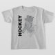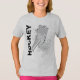 Camisa de hóquei das garotas de visão dupla. As meninas jogam hóquei também! Esta design apresenta uma silhueta de jogador de hóquei com rabo de pônei. Também tem o olhar angustiado sempre popular.