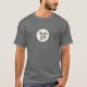 Um t-shirt squinty-eyed bonito do homem da lua com o nome do produto delicioso, "excremento injustificado" na parte traseira.