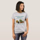 Camiseta de fazenda familiar/de negócios de casa. Teto de cinza com texto verde-lacrimejante e legumes e flores de design frescas colhidos. Personalize com o nome da fazenda, a data estabelecida ou ao serviço da comunidade e os produtos oferecidos. Use também o modelo no verso para endereço/local ou local de mercado, ou exclua o texto da amostra, o que diminuirá o custo. O design contém cenouras e outros vegetais em uma cesta perto de uma lata de água. Um gatinho preto se agacha perto de um cesto de girassóis.