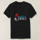 O que vestir para a festa? Uma t-shirt com um opositor fofo num chapéu de festa listrado, a flutuar num grande balão vermelho enquanto soprava um soprador de festas girado por estrela. Use "Personalizar este modelo" para alterar o texto "HORA DA FESTA!". Com texto claro para fundo escuro.