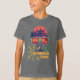 "Matizes vibrantes se espalham por uma cena de praia ensolarada, com palmeiras balançando na brisa. 'Horário de Verão' em negrito, com letra divertida completa esta lágrima, ensolarada."