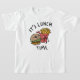 A que horas é o almoço? É hora do almoço. Engraçado hambúrguer e batatas fritas apaixonadas. Uma combinação perfeita para crianças e adultos.