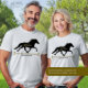 Esta t-shirt do Cavalo Islandês apresenta uma silhueta preta ousada em movimento com texto editável, permitindo-lhe personalizar o slogan e criar o nome para um toque pessoal. Perfeito para fãs de cavalos Icey, entusiastas de cavalos juntos, e estilos de vida equestres, esta camisa personalizável celebra o famoso andar voador. Ideal para dias de celeiro, eventos ou visto casual.