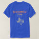 The T-shirt design saying "Houston," "Space City" and "Texas" is colored deep royal with bright red, grey, orange, white and yellow orange ink in it. It is made out of 100% cotton.