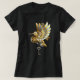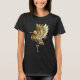 Steampunk, antigo, ouro, beija-flor mecânica com engrenagens de latão e chave prateada em fundo castanho listrado. Pássaro Dourado.