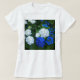 Uma fotografia de Hydrangeas azuis e brancos com folhas verdes.