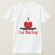 design de corrida de carros excelente para o amante de corridas. Um coração grande com bandeiras de damas cruzadas no centro. Carros de corrida em ambos os lados fazem disto um design único de um tipo I Heart.