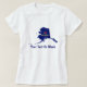 Uma silhueta azul, ou mapa, do estado do Alasca com o slogan "I Heart (Love) Alaska." Adicione nosso próprio texto. Venha visitar A Terra Excelente.