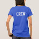 "TRW" escrito na área do bolso da frente, em tipo branco moderno e "CREW" escrito em letras grandes brancas e modernas na área do ombro traseiro. Bom para filmes, músicas, câmeras, palcos e outras tripulações se identificarem como parte do evento. Disponível em muitos estilos, cores e tamanhos de homens e mulheres. A palavra "TRW" pode ser alterada para lhe servir (Funcionarios, Segurança, Salvamento de Vida, etc.) Parece melhor em camisas escuras.