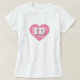 Esta t-shirt apresenta um coração calmo, legal e colecionado cor-de-rosa com um centro lavado em branco contendo a letra maiúscula em negrito ID, a abreviação oficial para o estado de Idaho, o estado da joia.