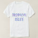 Gráfico mosaico, das palavras "Isles Tropicais", exibido no exótico, padrões insulares, de, fuschia, vermelho, turquesa, azul, amarelo, branco e preto.
