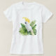 & on the tropical branches with leaves, white cockatoo and tropical leaves on a white background