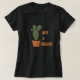 Cactus Illustration T-Shirt. Caneta pintada à mão e efeito de tinta picamente pera cacto num pote com o texto "Não é um Hugger".