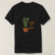 Cactus Illustration T-Shirt. Caneta pintada à mão e efeito de tinta picamente pera cacto num pote com o texto "Manipular com cuidado".