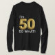 Celebrate a milestone 50th birthday with a touch of humor! This unique design features the bold statement 'I'm 50 SO WHAT!' in a striking gold and white font against a black background. Perfect for anyone turning fifty who embraces their age with humor. It's an ideal way to bring a smile and a laugh to birthday boy or girl. A fantastic gift for friends, or family who love a good joke and a stylish design.