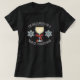 Fun wine lover Christmas T-shirt. Large glass of white wine with red ribbon around stem and snowflakes