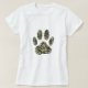 Um estilo de desenho animado de impressão de pata de cachorro de camo com efeito aflitivo aplicado à imagem. Camisetas personalizadas.. Ideia do presente.