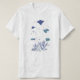Raios e peixes nadando sobre uma camiseta impressão gráfica de recife de coral. Design gráfico com tema do oceano azul.
