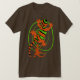 Legal camisa masculina com um brilhante design Gecko verde e laranja listrado. Lagarto strippy num fundo suave. Legal camiseta impressão de lagarto.
