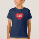 Esta camiseta apresenta um coração vermelho vibrante contendo as letras maiúsculas, brancas e em negrito IN, a abreviação oficial para Indiana, o estado de hospedeiro.