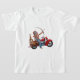 Um indiano jovem do nativo americano sela sua motocicleta vermelha personalizada, desenhar para trás seu arco, e obtem-na pronto para enviar uma seta cerimonial da oração em honrar do espaço de seus antepassados.
