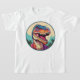 Adicione um pouco de rugem ao seu guarda-roupa com esta camiseta vibrante com um design de dinossauro corajoso e colorido com uma vibração vintage em quadrinhos. Esta camisa gráfica pré-histórica ao estilo cartoon certamente atrai atenção instantaneamente e é perfeita para crianças ou qualquer pessoa que ame história natural!