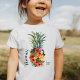 Camiseta Infantil Abacaxi tropical do Havaí com flores, nome da famí
