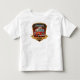 Esta camiseta personalizada para crianças apresenta um vibrante crachá de bombeiro. No centro do crachá está um desenho animado infantil divertido de um caminhão de bombeiros em vermelho brilhante. A faixa superior diz "Líder da Equipe" enquanto a parte inferior é para o nome do seu pequeno.