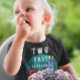 Camiseta de aniversário de criança com carro conversível vermelho clássico TWO Fast e círculo azul e verde.