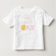 Camiseta do primeiro aniversário da menina Citrus com uma fatia de limão e um título de caligrafia moderna com um coração.