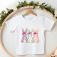 Torne a manhã de Páscoa dela ainda mais mágica com esta adorável camiseta infantil de coelhinhos no estilo Shabby Chic! Com três coelhinhos doces em aquarela com padrões de retalhos e laços cor-de-rosa delicados, esta camisa foi projetada para as menores caçadoras de ovos. A paleta de cores pastéis suaves e a estética inspirada no vintage tornam-na uma escolha perfeita para fotos em família, brunch de Páscoa ou um dia de brincadeiras. Confeccionada com algodão macio e respirável, que é suave para a pele da criança e durável o suficiente para todas as aventuras de feriado. Um charmoso presente de primavera que fará seu pequeno coelhinho saltar de alegria!