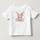 Esta camiseta adorável de Páscoa apresenta um coelho em aquarela com um laço rosa precioso, segurando uma faixa de bolinhas rosa. Personalize com o nome da criança. Funciona melhor em opções de impressão branca ou vibrante.