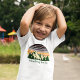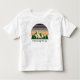 Personalize as suas próprias camisetas de criança na estrada da família para um menino ou menina embarcar numa viagem através da natureza neste verão ou outono. Personalize com o seu sobrenome debaixo da floresta verde de árvores e pôr do sol da montanha escura para manter férias legais para o seu grupo ao ar livre.
