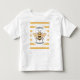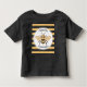 Camiseta de festa de aniversário moderna e fofa com listras pretas e amarelas e uma bela ilustração de uma abelha.