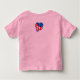 Nossa doce surfista americana está toda vestida em sua garba patriótica de hula pronta para celebrar o 4 de julho! Este gráfico querido enfeita estas crianças e camisetas infantis na frente com um impressão de companheiro de flores de hibisco no verso.