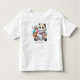 Uma linda camiseta personalizada para crianças pequenas com um adorável gatinho de Páscoa em um scooter carregado de ovos de Páscoa,