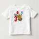 Leuk katten shirtje voor de jarige! Tekst: I'm 3 Afbeelding: oranje kat met een feestmuts op die in een mand zit met en wordt omhoog getild door 2 ballonnen
